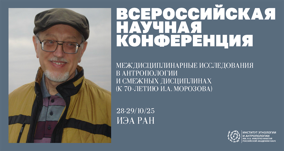 28 и 29 октября в Институте этнологии и антропологии РАН состоится всероссийская научная конференция МЕЖДИСЦИПЛИНАРНЫЕ ИССЛЕДОВАНИЯ В АНТРОПОЛОГИИ И СМЕЖНЫХ ДИСЦИПЛИНАХ (к 70-летию И.А. Морозова). Конференция пройдет очно (в здании Президиума РАН, Ленинский проспект, 32а, зал заседаний Ученого совета ИЭА РАН) и онлайн на платформе ZOOM.
