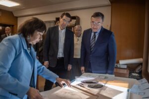 Знакомство с историческим наследием Института продолжилось в кабинете-музее С.П. Толстова, где заведующая Музейно-выставочным отделом ИЭА РАН Анастасия Юдина рассказала об уникальных коллекциях Хорезмской археолого-этнографической экспедиции. Алексей Загребин отметил, что материалы экспедиции были успешно экспонированы на выставке в Доме культуры «ГЭС-2» в 2025 г.