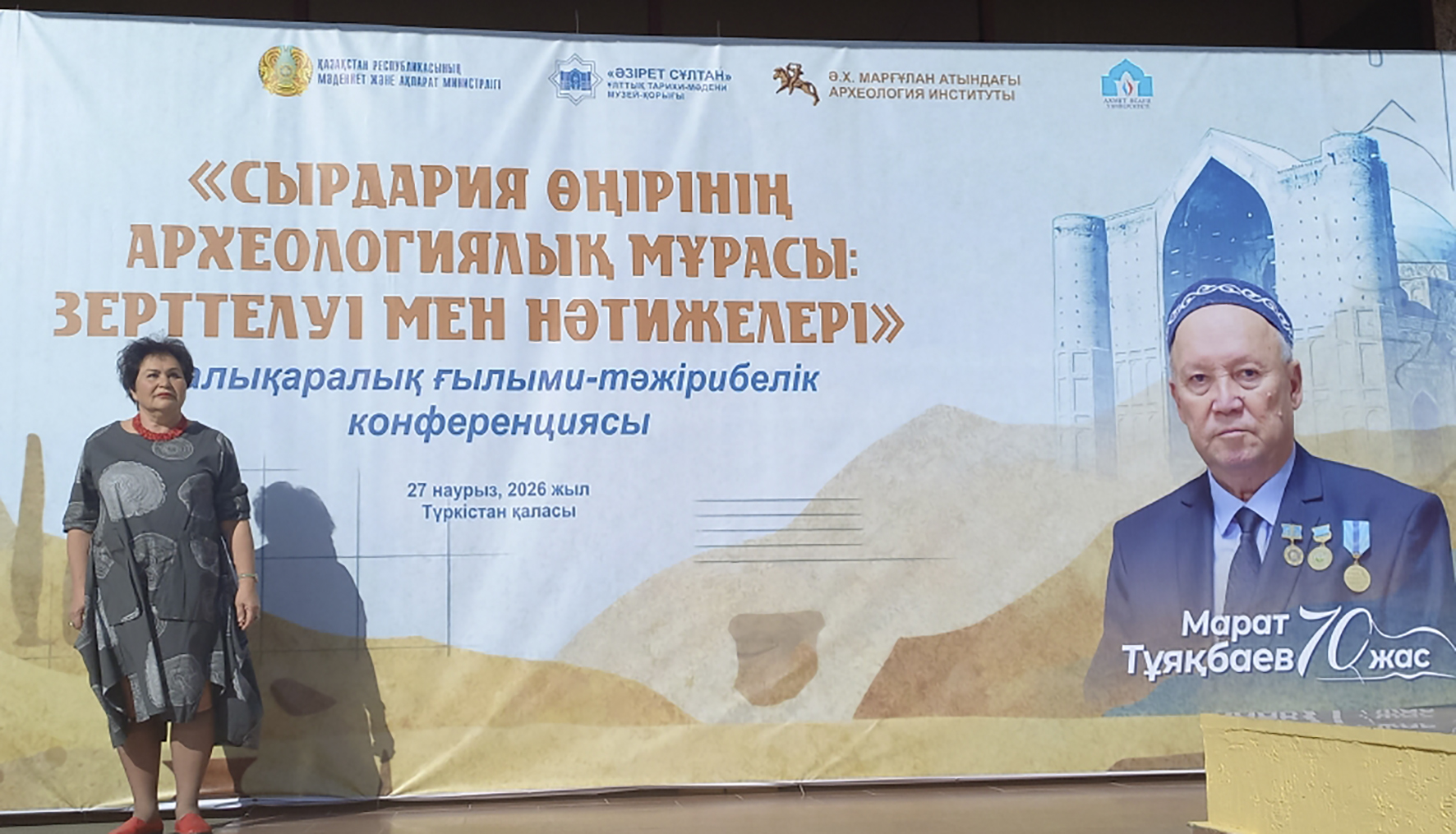 27 марта в г. Туркестане (Республика Казахстан) прошла Международная научно-практическая конференция «Археологическое наследие Сырдапьинского региона: исследования и результаты». Она была приурочена к 70-летию известного казахстанского археолога Марата Туякбаева. Конференция была организована на базе музея-заповедника «Азрет Султан», который включает в себя всемирно известный мавзолей Ходжи Ахмета Ясави XIV-XVI вв., суфийскую обитель, средневековую баню, несколько мавзолеев и городище Куль-тобе первых веков н.э. На форуме был высоко оценен вклад М. Туякбаева в изучение археологических памятников Туркестана и Туркестанской области, а также представлены новейшие исследования археологов Казахстана.