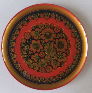 Хохломская роспись — русский народный художественный промысел, отличающийся красочным сочетанием золотых и красных узоров на темном фоне. Материал: дерево, краски.