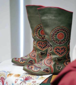 Ичиги — лёгкие мужские и женские сапоги с мягким носком и жёстким задником, украшенные обильной вышивкой в виде растительного орнамента. Материалы: кожа, ткань, нити